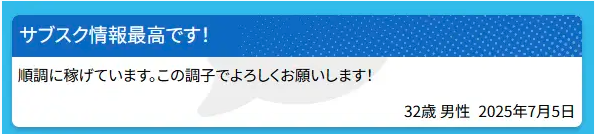 このレビューは1か月間参加できるサブスクプランに参加した会員のレビューと思われるが、